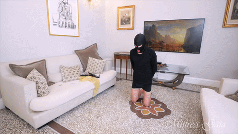 Stamattina ho dovuto punire questo schiavo ribelle. L’ho frustato duramente e poi l’ho chiuso nella gabbia e sono andata in palestra. Ora sono di ritorno e voglio vedere se se ha cambiato atteggiamento ed e’ pronto a servirmi. Lo tiro fuori dalla gabbia e gli ordino di annusare le mie scarpe e le mie ascelle; ho sudato molto in palestra e sono veramente “odorose”. Poi mi tolgo le scarpe; i calzini sono davvero sporchi ma, per mia fortuna, ho la bocca dello schiavo a disposizione. Spingo un piede a fondo nella sua bocca facendolo soffocare, poi gli infilo l’altro piede. Non mi importa se non riesce a respirare e continuo a ficcargli i piedi in bocca...